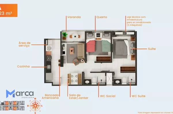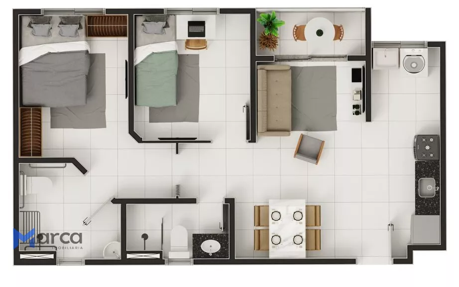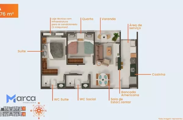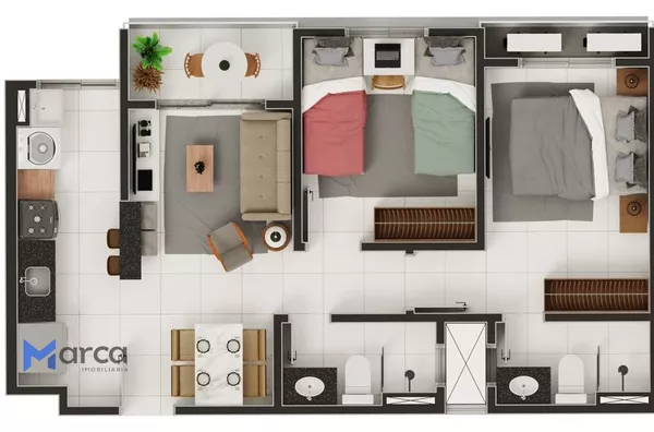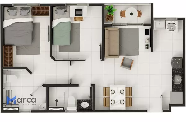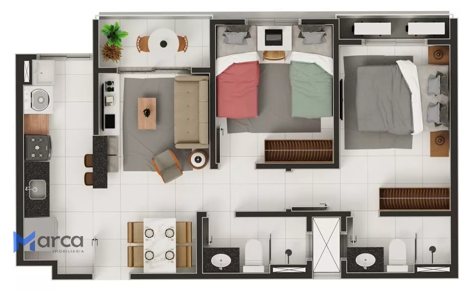 2 quartos (sendo 1 suíte)