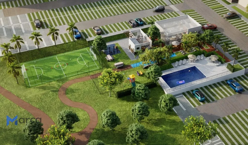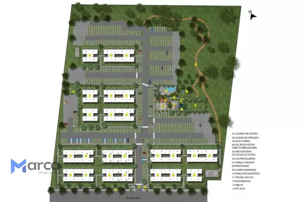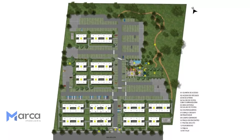 24 BLOCOS DE APARTAMENTOS COM 4 UNIDADES POR ANDAR EM 5 PAVIMENTOS POR BLOCO;