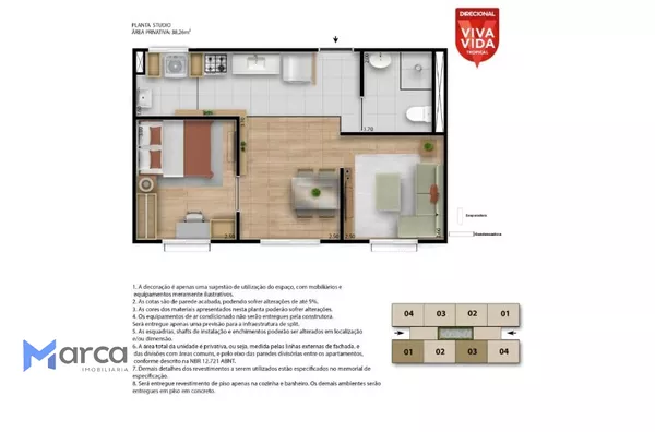 APARTAMENTOS COM 1 E 2 QUARTOS;