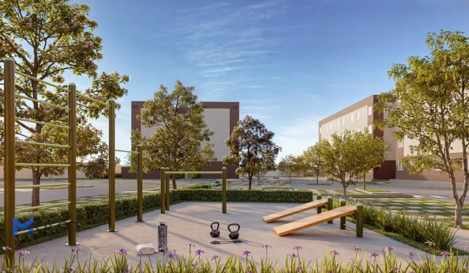 Descubra o conforto de viver em um condomínio completo, com apartamentos de 2 quartos, cozinha americana, área de serviço e banheiro social. Um espaço planejado para unir praticidade, funcionalidade e bem-estar no dia a dia.